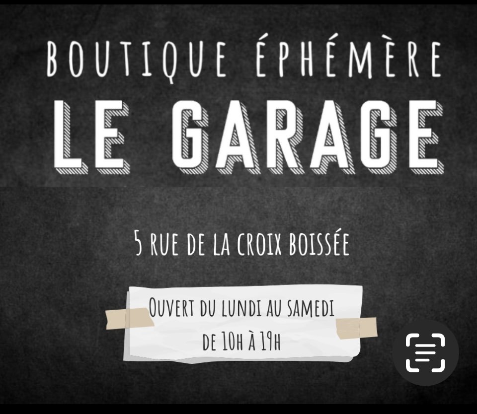 BOUTIQUE EPHEMERE LE GARAGE lundi 15 avril 2024 10:00 samedi 20 avril 2024 19:00 BOUTIQUE EPHEMERE LE GARAGE 5 Rue de la Croix Boissée Mennecy, IDF, 91540 France (carte) Google Agenda ICS Venez découvrir la nouvelle boutique éphémère de Mennecy. Un nouveau cadre accueillant et chaleureux pour vous inviter à des découvrir des créations et produits des artisans A très bientôt